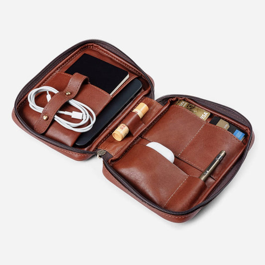Leather Mini Folio in Cognac