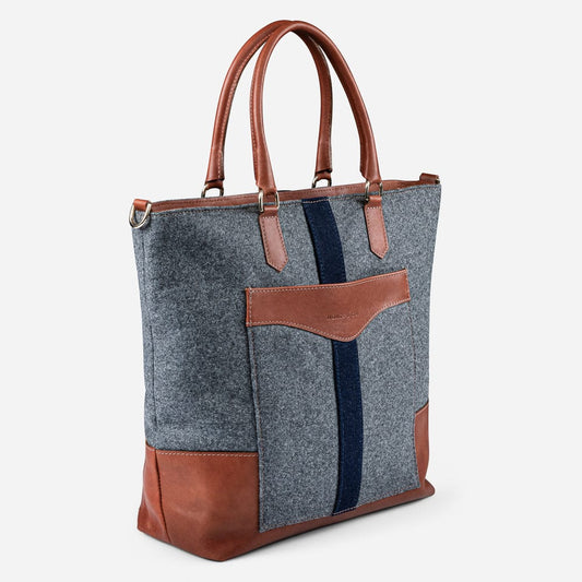 Italian Wool Tote in Dark Grey & Cognac
