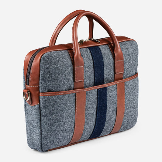 Italian Wool Briefcase in Grey & Navy
