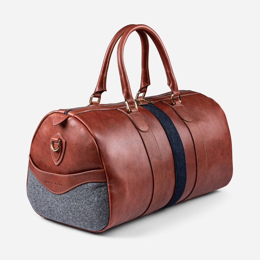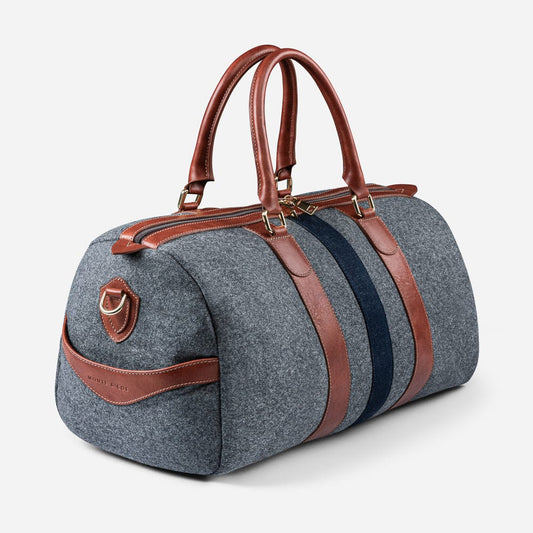 Italian Wool Weekender in Grey & Cognac