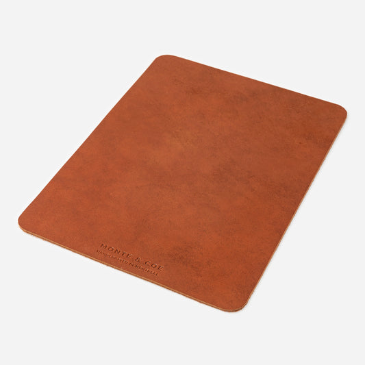 Merino Wool Desk Mat & Leather Mouse Pad in Cognac