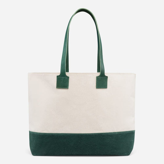 Waxed Cotton Twill Apron in Hunter Green & Nude