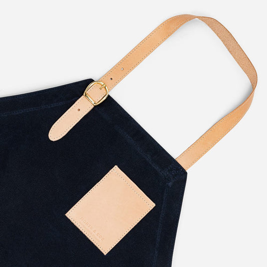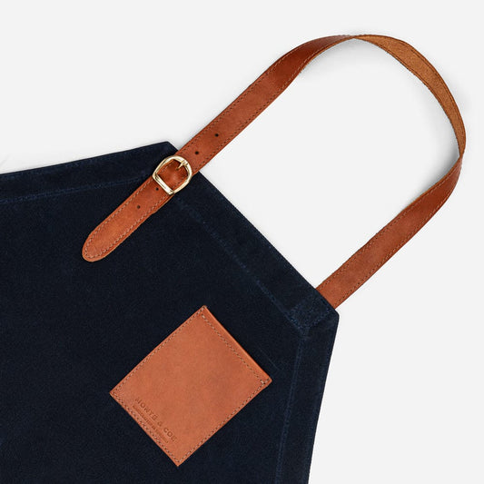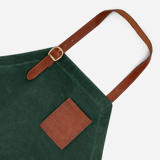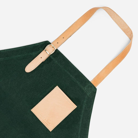 Waxed Cotton Twill Apron in Hunter Green & Cognac